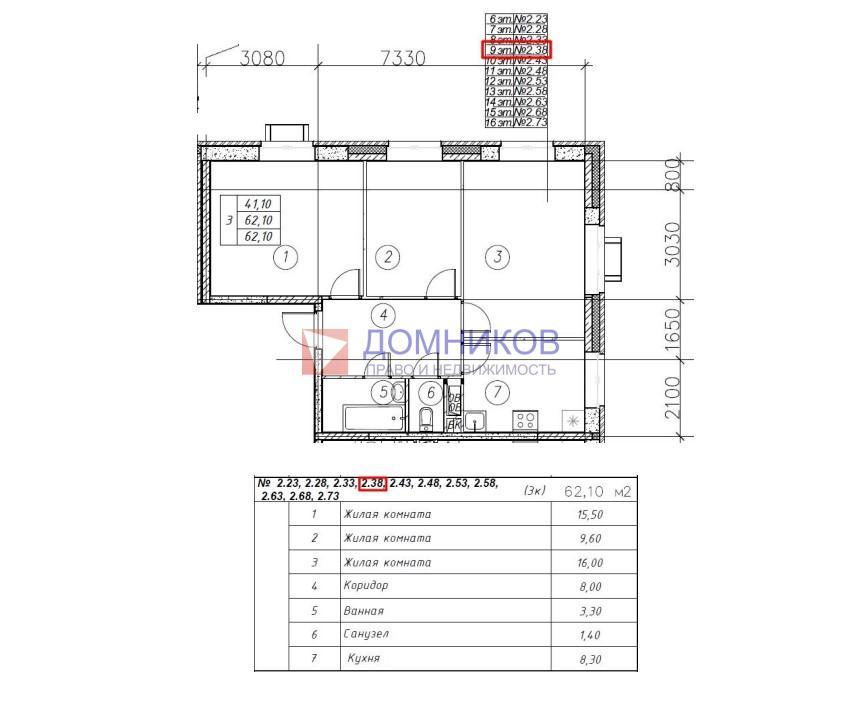 | Общая площадь | 62,1 м2 |